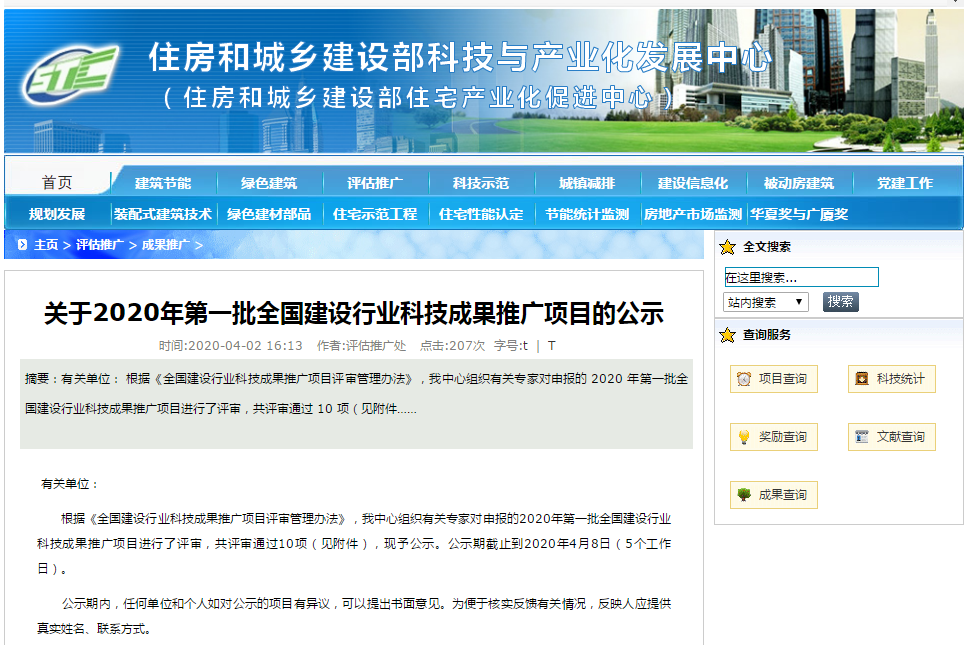 祝贺利来w66国际环保“模块化污水处理装置(KtLM型)”入选2020年第一批全国建设行业科技成果推广项目。
